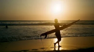 Bagi para fotografer, momen ini adalah surga visual. Siluet peselancar yang berjalan pulang membawa papan, langit berwarna jingga, dan air laut yang memantulkan cahaya matahari sore — semuanya menciptakan komposisi sempurna untuk diabadikan.